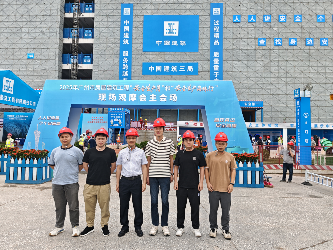本次觀摩活動在琶洲南區AH090633地塊項目舉行。現場播放了“安全生產月”主題宣傳片和事故警示教育片,并展示了安全VR體驗館、安全巡視機器狗、AI安全帽等智能建造領域的新技術應用。同時,參會人員學習了項目在安全生產、精細化管理、安全標準提升等方面的先進經驗和施工工藝。