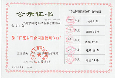 連續(xù)十九年“廣東省守合同重信用企業(yè)”