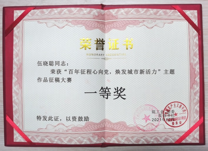 我公司職工參加規劃院“百年征程心向黨,煥發城市新活力”主題作品征稿大賽榮獲一等獎